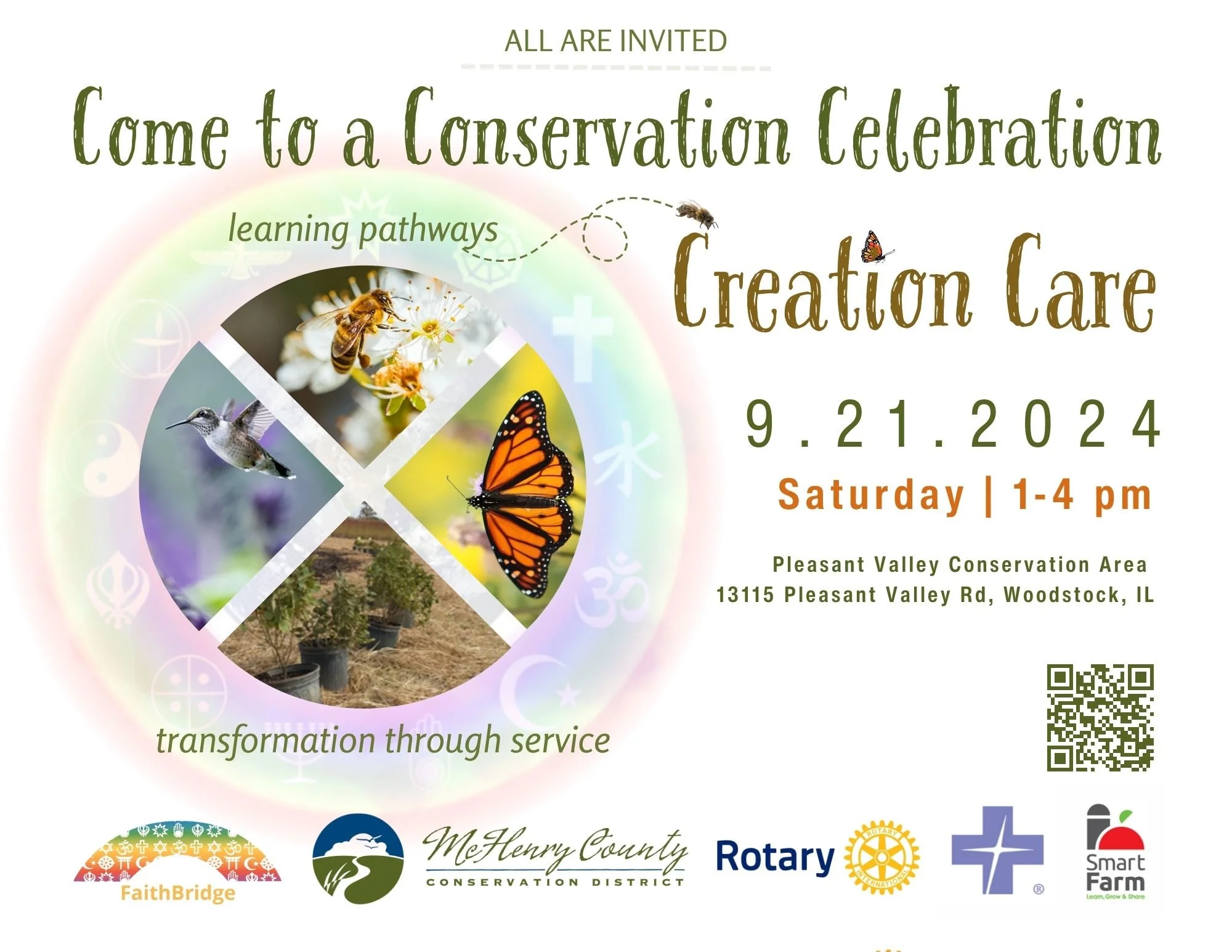 Creation Care Saturday, September 21, 2024 1:00 PM 4:00 PM Pleasant Valley Conservation 13115 Pleasant Valley Road Woodstock, IL, 60098 United States (map) Google Calendar ICS